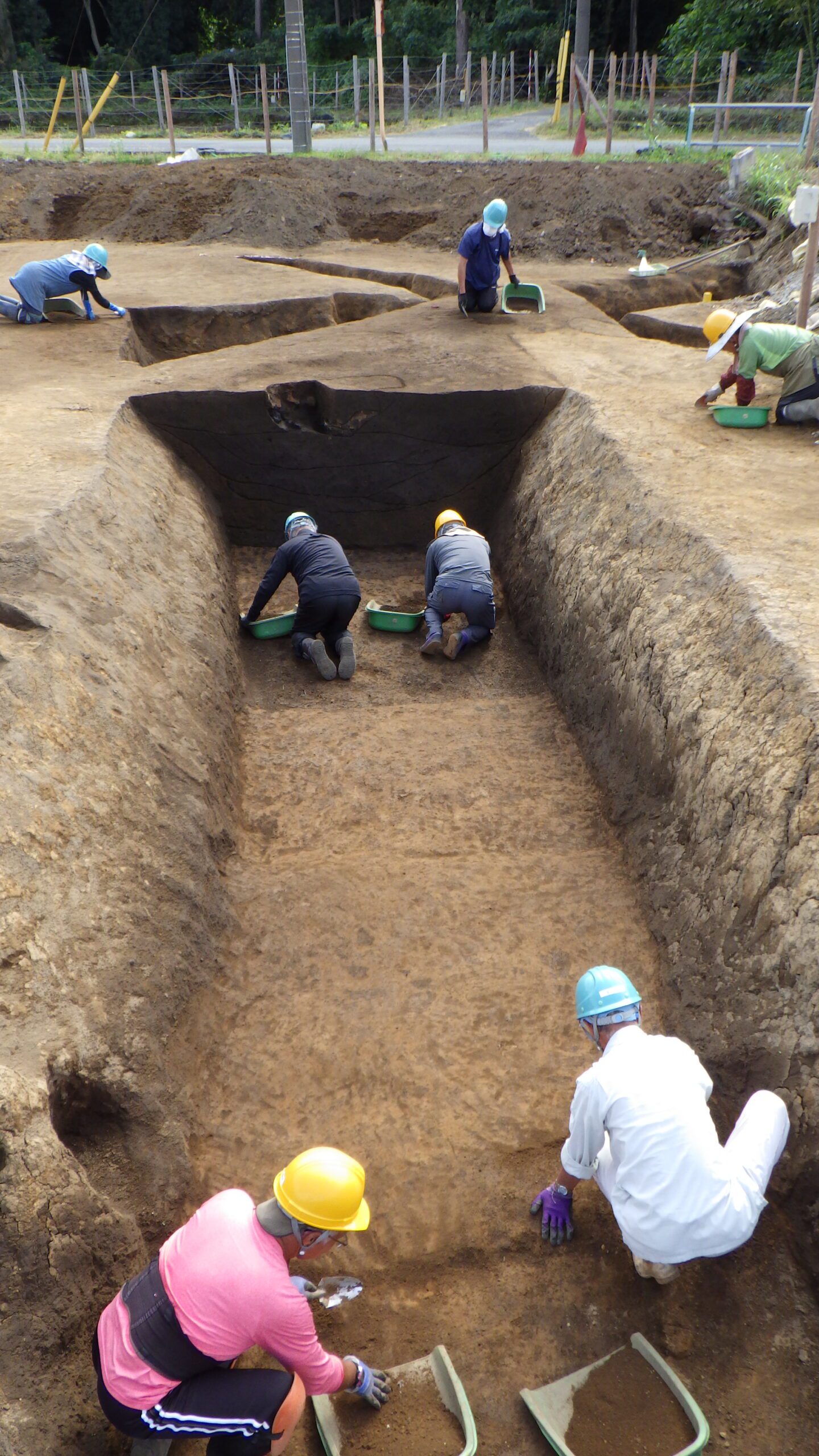 奈良時代の一辺約6mもある大型の住居跡を調査しています。現在は、床面を精査し、住居のいろいろな施設を見つけています。