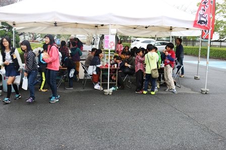 当日は、雨にもかかわらず開場前からたくさんの小学生が集合し、屋外の「グルメ広場」でヤキソバやゼリーフライ(地元のB級グルメ)、惣菜パンなどを食べながら楽しく一日を過ごしていました。