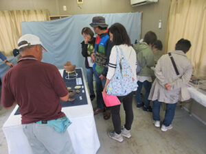 見学会では、奈良・平安時代の竪穴住居跡や中世の遺構の解説のほか出土した遺物を展示しました。