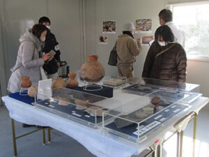 中世の遺構の解説や出土した遺物の展示を行いました。